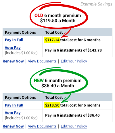 NOTE: If you find a better rate, you can easily cancel your current policy and your insurer must immediately refund your entire unused premium (it’s the law!)